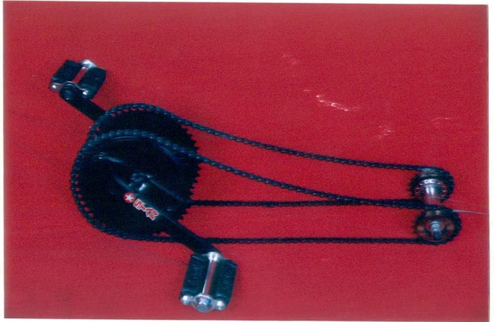 In the pedaling system of the conventional type, the human foot effort is applied on the sprocket shaft. In the invented pedaling system, the human foot effort is applied adjacent to the teeth of the sprocket. This is similar to that of a flywheel of a machine or a village grain’s grinder wherein the handle is provided at the edge and not at the center. Normally there is one set of pedaling system consisting of a sprocket, a pedal, a pedal rod, a chain and a freewheel provided on one side of the sprocket shaft in the conventional pedaling system. In the invented system, there are two similar sets of pedaling systems, one set on each side of the sprocket shaft, wherein the human foot effort is applied adjacent to the teeth of the sprocket in each set. This invented technology delivers easy and non-strain pedaling for the rider.