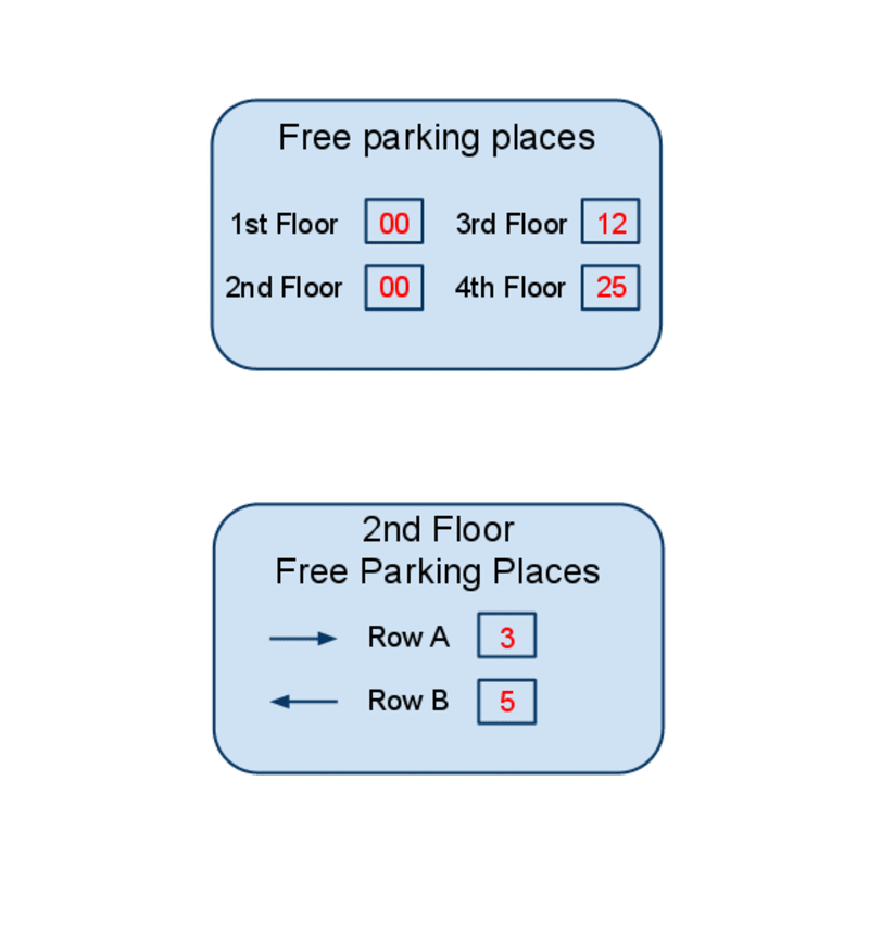 3 - A display tells the driver if there are any free places on that particular floor or area of the parking lot. Optionally, it may also instruct the drivers how to get there.