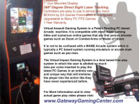 The Virtual Assault Gaming System is a time based free play system in which the user is allotted so much time per coins inserted to play the latest PC Games in an entirely new and unique way that will immerse the player into the action like they have never experienced before!
