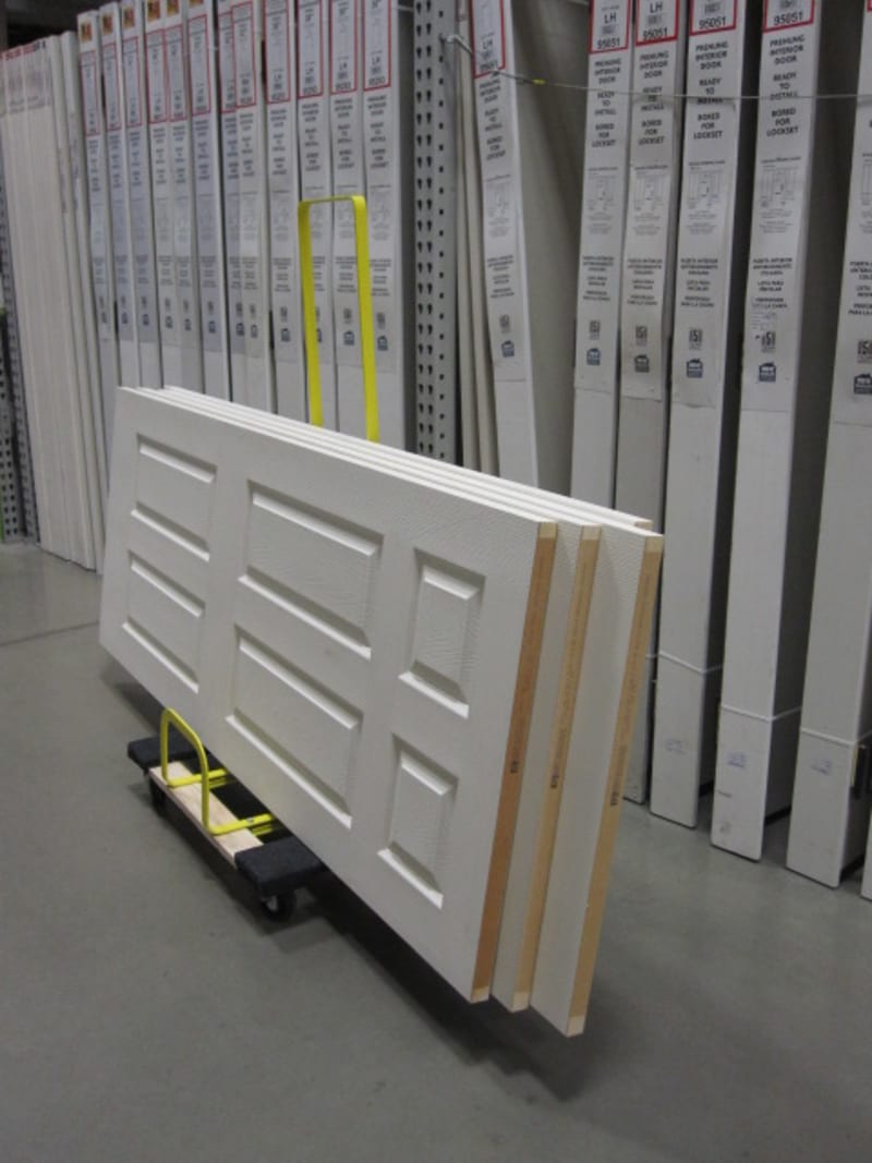 To carry and move large, thin items, it is best to employ a Panel Trolley. They have vertical supports to hold large, thin items on edge, in an upright position which allows easy maneuvering through doorways and narrow passageways by one person.