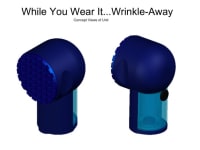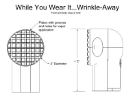 The WYWI...Wrinkle-Away© uses a very warm soleplate, set at the hottest safe touch temperature, and an atomizing transducer to generate warm vapor moisture. A variant will include small vibrating motors to give added stimulation to the fabric’s fibers. Micron size droplets from the transducer moisten the fibers without “wetting” the material. The soleplate allows for effective delivery of the moisture, gives a means to flatten/stretch the fabric, and transmits heat and vibration to enhance the wrinkle removal. A user simply adds some water to the unit’s reservoir, plugs it into an AC outlet, turns it on and then holds a button down while applying the soleplate to the wrinkled areas. The unit is moved across the clothing in a motion that attempts to smooth the wrinkle. A non-optimized proof of concept prototype worked well for cotton and cotton blends. In 15 to 30 seconds the wrinkle was completely removed or relaxed enough to where it was no longer noticeable.