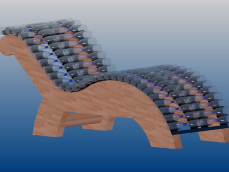 The entry is a confortable and relaxing stove bench cushioned with plastic bottles. When you are tired or experiencing back pain due to work (such as long hours of computer use), laying down on the bench may help reduce the stress and pain.