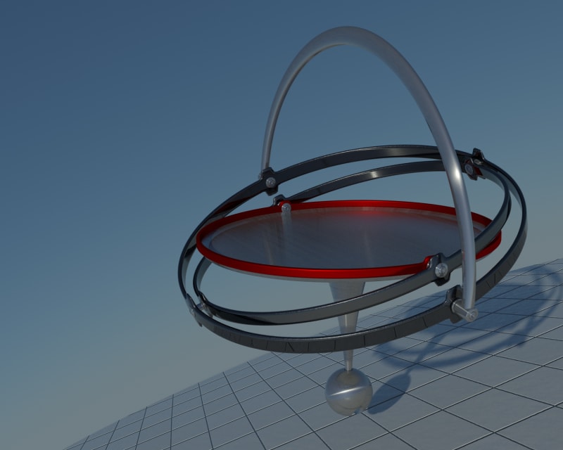 There is a metal ball attached to the tray with a conical metal part. This is the most important element of the design because it makes the tray stay always perpendicular to gravitational direction. There are two circular metal frames around the tray which make the tray stay still while they are rotating in x and y plane. The conical part with the ball can be turned 180 degrees and attached to the handle to keep the tray on a table.