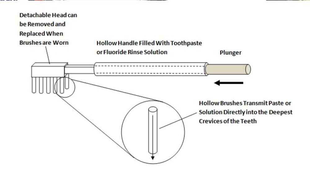 Until now, tooth brush and tooth paste have been seen as separate items. Also, using traditional tooth brushes, it proved difficult to apply the tooth paste or fluoride rinse solution directly into the deepest crevices & spaces of the teeth.