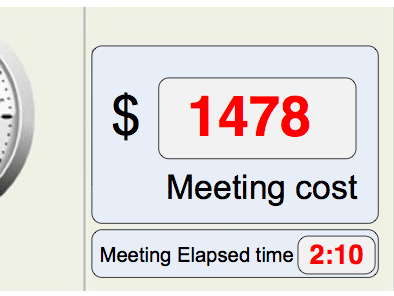Business meetings, if not run effectively, cost cooperates thousands of dollars every day and increase operating and overhead costs. My invention is a programmable clock that display time in the tradition analog format and display the cost of the meeting digitally in big red digits in local currency.
