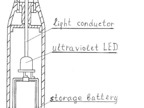 All the known toothbrushes should be periodically sterilized. First proposed construction of a toothbrush that can do it yourself by pressing an on-off” switch. Built-in LED emits ultraviolet light which kills bacteria on the toothbrush bristles. The LED is powered from a conventional source of energy and the solar battery, which is located on the toothbrush handle.