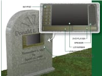 I am pleased to present to you Everlasting Memories, as invented by Tony Pettry. Conceptually speaking, this invention is a line of headstones and grave markers featuring interactive video screens which display photographs, home movies and audio commentary of the departed. The Design intent is to provide a heartfelt means of recognizing the life and interests of a departed loved one, as well as a simple way in which to keep the memory and image of that person “alive”.