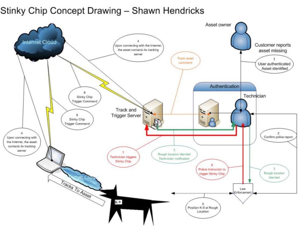8. Scent released from the Stinky Chip guides Law Enforcement working dogs (K-9 units) to the exact location of the stolen asset.