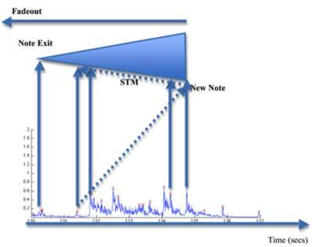 It is believed that feature estimation using the auditory memory model will bring the field significantly forward. The details of the auditory memory model consists of two parts. The onset detection can be compared to the attention human beings put on the sound. The memory model is based on the knowledge of the short-term memory, and contains a homogenous decay and displacement mechanism that calculates the activation strength of the components in the auditory memory as a function of the number of components in the memory model, and the total duration of the model. The memory model mimics the storing, retrieval and forgetting of the human auditory short-term memory.