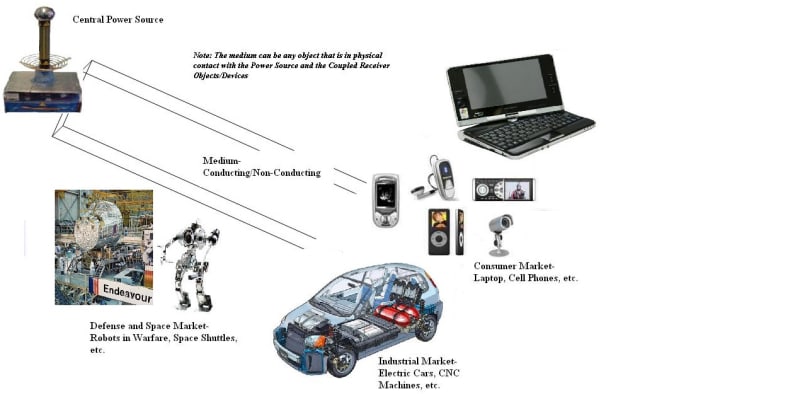 Engineering solutions to the development of techniques to transfer power through any physical medium or object is envisioned to mitigate the complexity involved in the wiring of electronic and electrical systems.