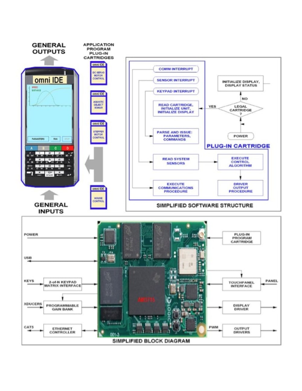 This idea is novel in that it provides working, known good application templates on ready-to-use SD cartridges that plug into the omni-IDE hand-held device. The SD not only contains the working program template, but also the relevant documentation. Moreover, a developer can adapt or generate his own SD software cartridge, and then use the result as a reference design for a commercial product. Revisions and new applications are implemented merely by inserting the new application cartridges. This concept is made possible by the emergence of rich featured processors such as the AM3715 as well as various miniature SOMs (System on Module).