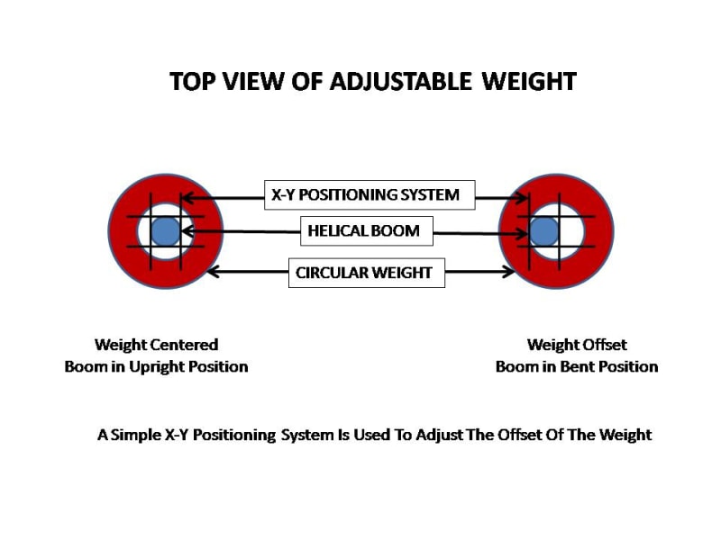 As the weight is moved off center, the helical shaft bends proportionally, the higher the weight is located and the greater the offset, the greater the bending. The circular weight is offset by a simple x-y positioning mechanism. In addition to the offset positioning, the weight can be positioned vertically along any point of the central shaft by a gear mechanism.