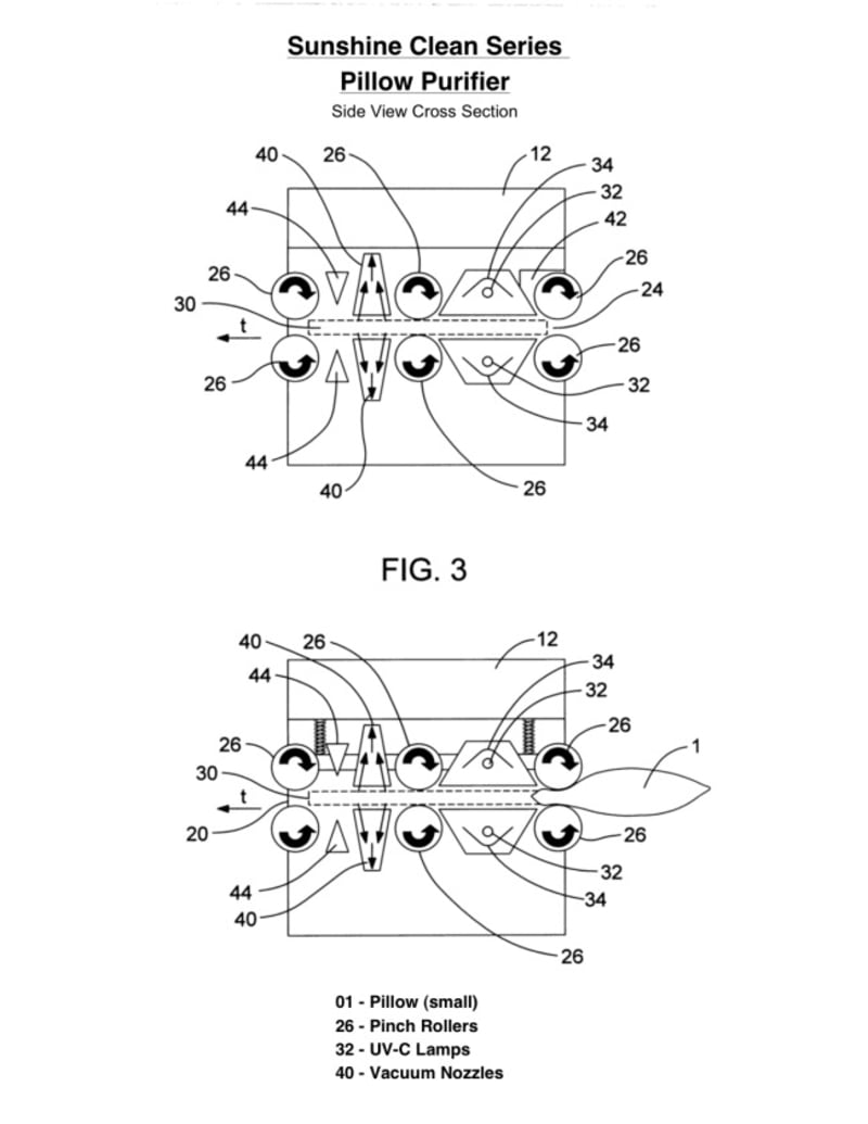 The Pillow Purifier© is mainly targeted to the hospitality and cleaning industries but not limited there. Utilizing UV-C light and vacuum technologies, it can automatically clean and sanitize a pillow in several minutes. Killing all forms of bacteria, viruses, fungi, dust mites, and etc. then collecting all the associated debris. UV-C Light disinfection has been used in hospitals, food processing, water treatment, and HVAC systems for over 30 years. The technology is proven and recognized by the EPA, FDA and USDA as a valid and effective means of eliminating biological contaminants.