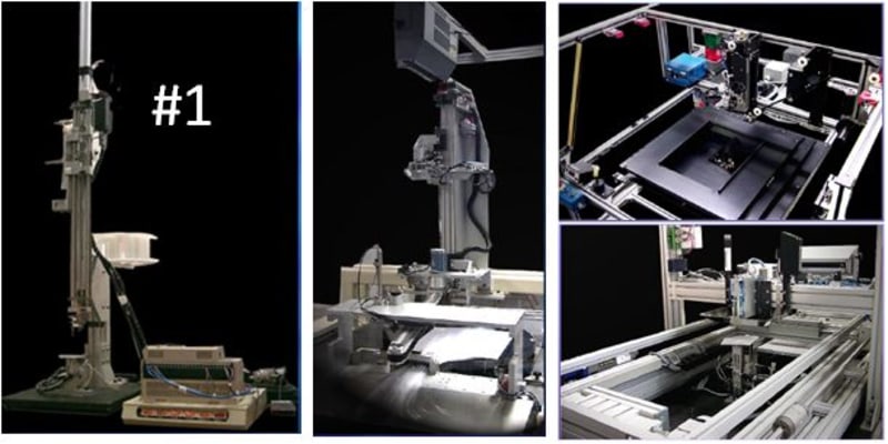 I invented a machine (#1 in Picture) that evolved into three different CNC machine configurations designed to permanently implant plastic optical fibers into any flexible materials including fabrics for apparel, vinyls, light plastics, coroplast, cardboard, gatorboard, etc. Each fiber is then assigned and placed into a comb position that will be attached to an LED (Monochromatic or RGB).