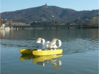 The robot can carry on board a large variety of sensors and equipment. Modularity is an important feature of the system. Assembly is very practical and quick . Low weight and small dimensions make ground handling easy. The catamaran, partially disassembled, can be easily transported over the roof of a medium-size car or inside a Station Wagon . Assembly and preparation for the mission takes just a few minutes. One operators is sufficient both for transportation and for managing the whole mission.