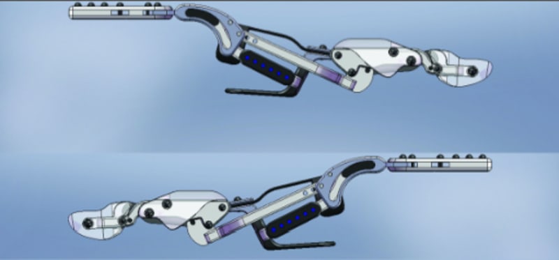 Approximately 94% of all non-fatal amputations involve fingers. More than one in every two hundred people will lose one or several fingers in their lifetime. Until the X-Finger the only form of prosthetic rehabilitation available for finger amputees were cosmetic silicone replacements. Although these silicone fingers look realistic they do not bend or function in any way. X-Fingers operate by the movement of the user’s remnant finger. If someone loses an entire finger, an opposing finger controls the artificial fingers movement. When all of the fingers are missing, the movement of the palm controls the movement of all missing fingers.
