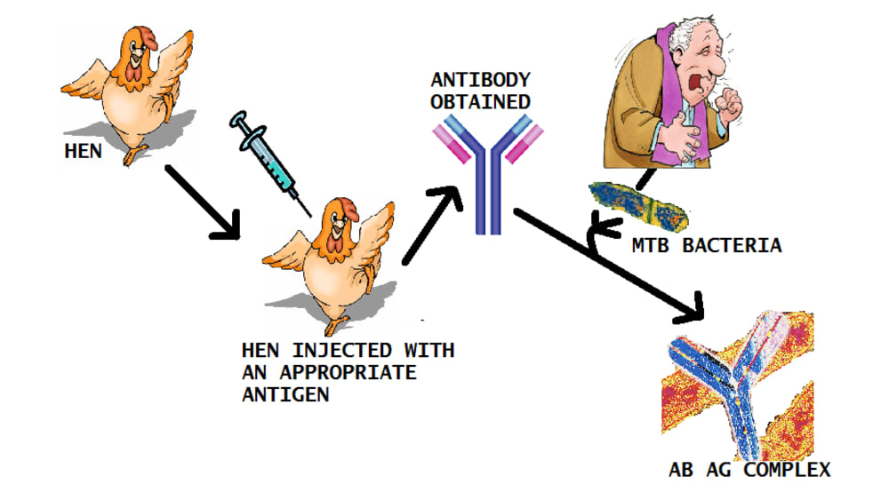 In this regard we propose a novel diagnostic kit for TB using a inexpensive means of antibody preparation, wherein the cost of synthesising can be brought down drastically by using IgY which are obtained from the egg of a hen when injected with a immunogen specific for TB bacteria. Further, using this principle we would look for antibody binding to TB bacteria that would result in a change in the spectrum of the bound bacteria, and this way we can actually quantify the results too, which will greatly help in analysing the rate of disease progression as well. Our idea is to market this detection technique as a kit which will be user friendly, cheap and give results quickly and with a high degree of specificity. Thus this method is apt for developing countries wherein a large population is burdened with the disease and routine screening is the key to disease cure.