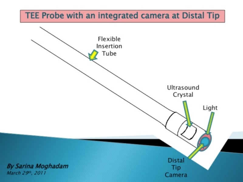 Since there is no direct visualization of esophagus during TEE (Tranesophageal Echocardiography) probe insertion and manipulations, it requires more attention compared to conventional optical Gastroscope.