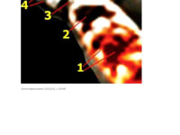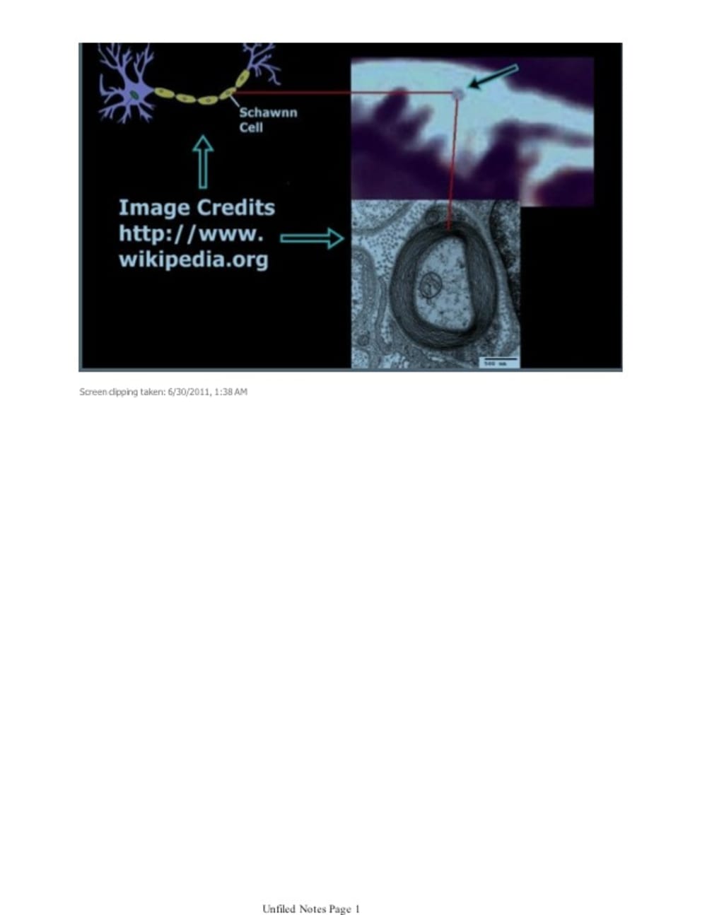 The second hypothesis is apparent in the diagram in the upper left top corner showing a nerve cell and the dendrite at the Nodes of Ranvier, within a Schawnn cell. The red lines and aqua colored arrow point to these in the upper top right corner which is a dendrite undergoing neurodegeneration. The small semi-circular area shows what may have been previously a healthy Schawnn cell with an active axon in almost the center of the Schawnn cell itself. ORIE supports the theory that the 'soldier cell' is the primary cause of deterioration of the dendrite's myelin sheath and that nerve fibers are first to die starting at the end of the dendrite tentacles and eventually withering all the way back to the nerve cell.