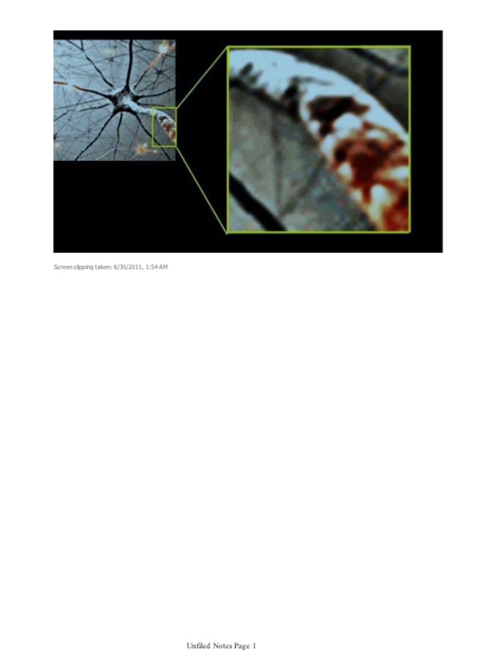 A new diagnostic tool, called, 'ORIE', the acronym representing 'Optical Remote Image Enhancement ' has been developed by the Respondent(s). The ORIE technology is non-invasive in nature, is painless and exploits radio-imaging technologies, e.g., CAT-scan, PET-scan, and advances instant imaging protocols to the 'next-generation' of investigative and analytical capability. The ORIE system identifies structures, elements and compounds contained in the subject of study. In study #1) ORIE shows that there exists a heretofore unidentified carbon based protein precursor cell. This cell, called a 'soldier cell' first consumes all of the oxygen in the dendrite and myelin sheath. We term is event, 'The Genesis Effect'. Once the oxygen is depleted and nutrients are consumed the (smart) solider cell consumes the Co2. However, this protein cell may also deplete and consume the chemical compositional make up of the myelin sheath itself. Due to the Genesis Effect cells under attack cannot dispel excreta that leads to necrosis and continued neurodegeneration.