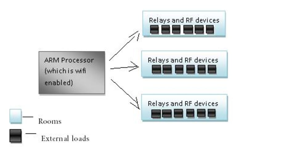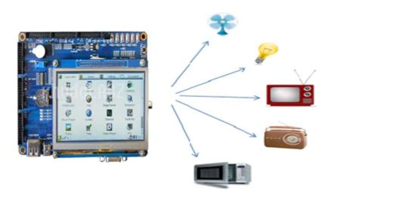 In a nutshell, the entire system constitutes the following entities to realize this concept: ARM processor embedded with touch screen which also performs transmission of data and the receiver should have a controller connected to an OctoCoupler to switch to control the end device. The speech recognition module provides a function of self-learning human voice so that people could directly give command to control appliances in their local area as well as remote area. The same can be performed with the help of Touch interface based User Interface.