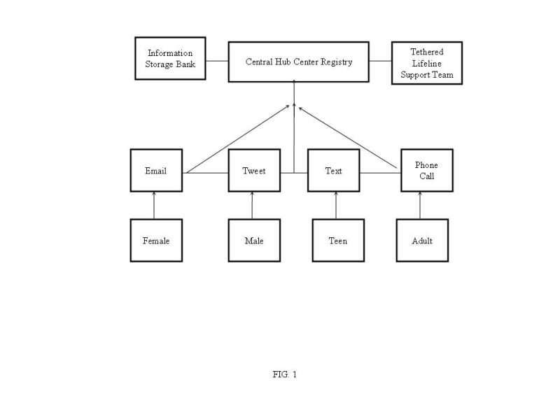 In FIG. 1 illustrates a female, male, teen, and adult communicating informally using e-mail, tweet, text, and phone call to provide trace information about the description of the person, place, event or destination going to, leaving with, etc. for storage at the central hub center information storage bank managed by the Tethered Lifeline Support Team. In FIG. 2 illustrates Police investigation utilizing Tethered Lifeline Support Team which control communicated trace information informal conversations store in central hub center registry information storage banks to solve reported missing person, thus eliminating or voiding the current 24-72 hours+ waiting period before initiating formal missing person Police investigation.