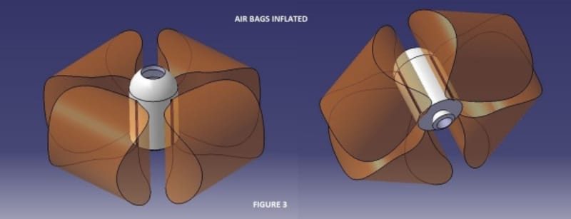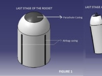 For this, we can have a mechanism that can recover the satellite from the rocket in case of a technical snag. In my model, the last stage of the rocket which houses the satellite can be recovered. The model has the last stage of a rocket that can be separated from the other stages of the rocket in case of an emergency. The last stage is modified to house a parachute and airbags. The Parachute is housed at the top of the last stage and the airbags are kept in the stage's casing at four locations as in figure 1.