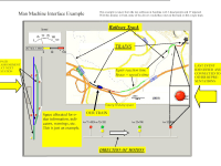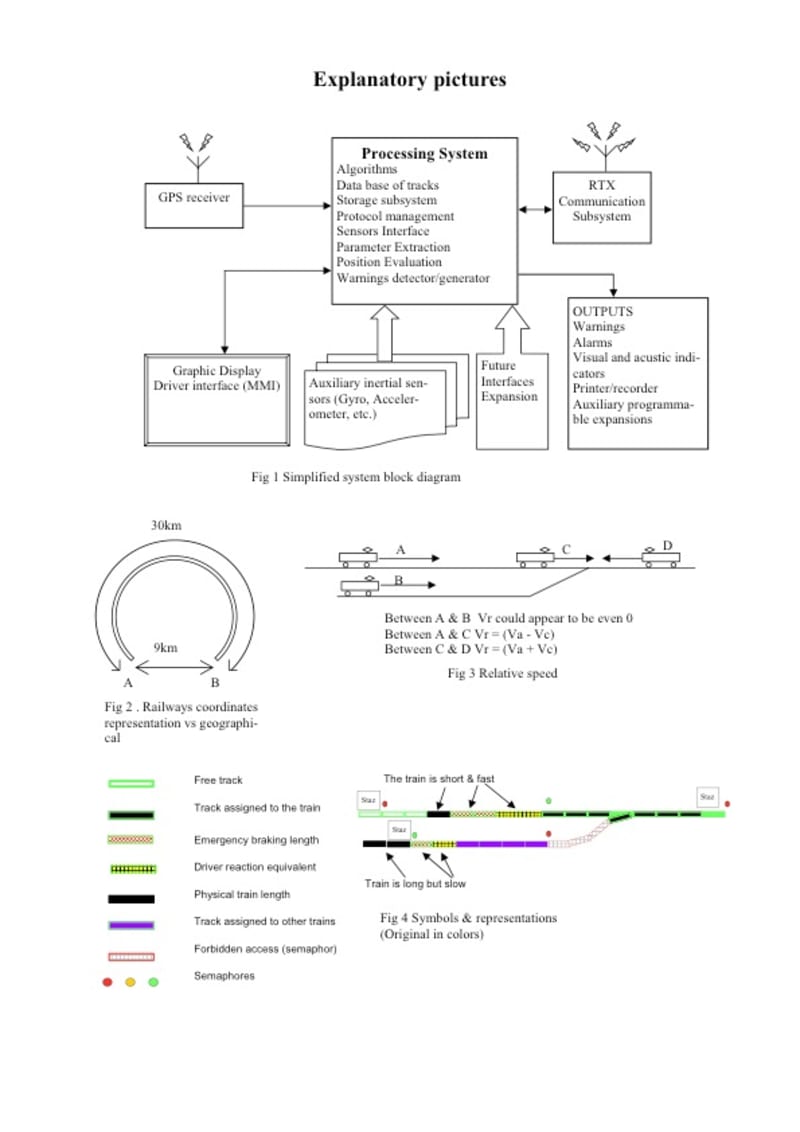 A graphic display (the MMI) allows viewing a track map with an indication of all the trains moving in the "area of interest," the signals, the crossings, etc. Train's track occupation are represented with a Black portion representing the train, a Red representing the space required to stop using the emergency brake and aYellow portion that shows the space allowed to the driver to take decisions. E.g., train 250 meters long, 1,200 meters to brake at the actual speed and 20 seconds to react to an event before starting an alarm.