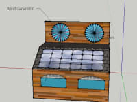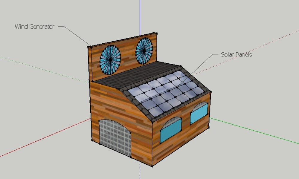 On the roof there are windmills and solar panels that supply the home during the day and night.