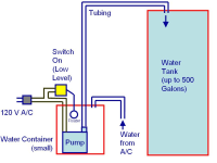 My idea looks at recovering waste condensed water from A/C units that run for several months over the year. In order to do so a device fills a tank with water automatically.