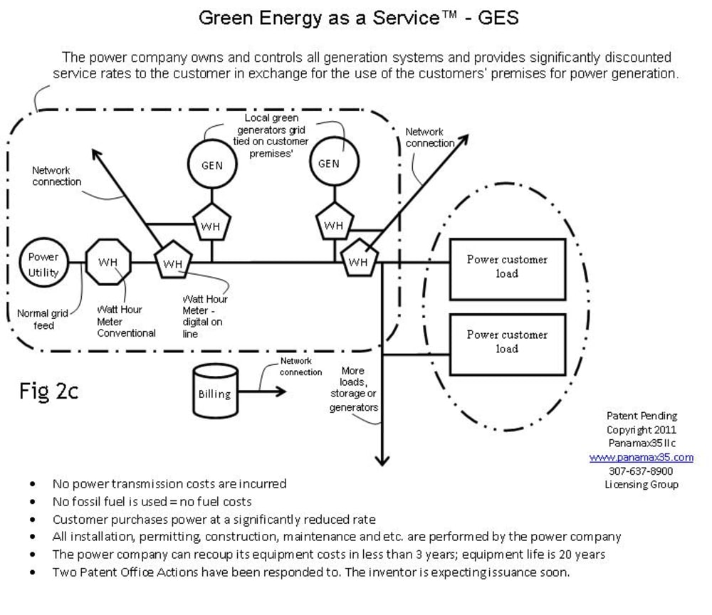 GES consists of an innovative novel business method (patent pending) where renewable energy is generated by equipment that is installed on the customer’s premises where the equipment is owned by a utility, cooperative or third party. GES makes use of readily available technologies, legal frameworks, and existing infrastructure. GES is not limited to any technology and can encompass any kind of grid connected distributed renewable energy generator.
