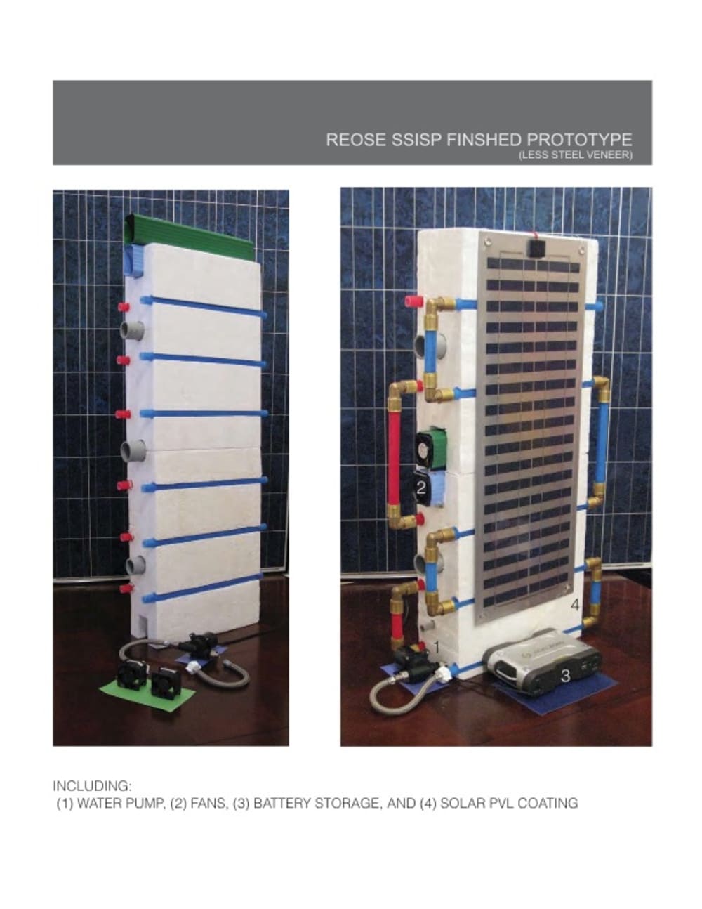 Normally buildings are framed and then the construction trades are invited to install the electrical, mechanical and plumbing sub-systems. Using the REOSE solar panel eliminates this timely and labor intensive construction step altogether. Making future floor-plan changes is simple as installing the electrical, potable water or HVAC outlet at the desired wall, floor or roofing location, as each solar panel has both supply and return headers for all of these critical habitation needs in every surface.