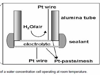 The RT-SOFC is a room temperature fuel cell in which nano-structured oxides such as YSZ (yttria stabilized zirconia) or SDC (samaria doped ceria) are used as electrolytes. Due to the configuration as concentration cell only water is used and produced during operation of the fuel cell.