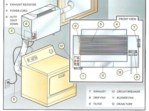 The Green Exchanger provides a means to recover the heat generated by a clothes dryer for reuse as a supplemental household heating source. This exchanger is the only product to provide the secondary filtration and moisture reduction of the flow to allow for re-use.