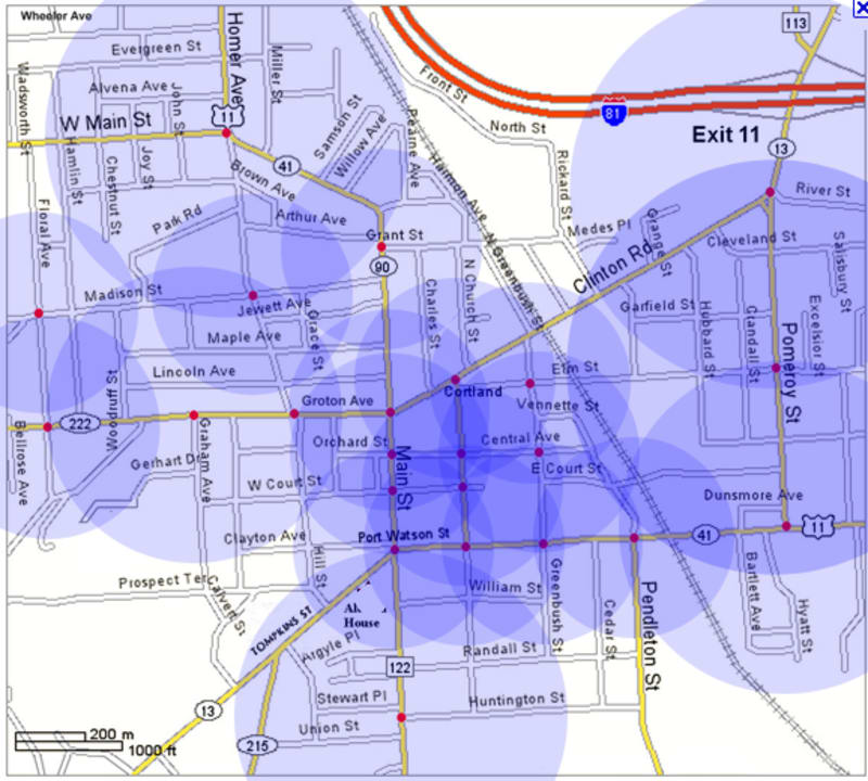 The network connections between neighboring traffic lights could be hard-wired or wireless. For ease of installation, a wireless technology such as Zigbee would work in most cities and towns. Antennas could optionally be directional (4 directions, for example) to extend reach where necessary.