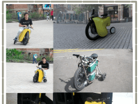 The combined direction system; the inclination of the driver causes the back wheels to turn and indeed the entire vehicle giving a new fell and drive experience, designed for small curves (turning radius 0.8m).