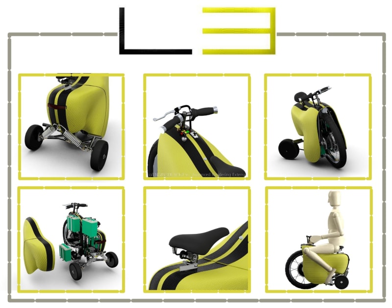 Designed for travel 7 hours with a range of 20km on only one charge (at top speed), that can be recharged in 4 hours at least. Thanks to a motor of 1000W and six 12V20Ah Pb acid batteries, L3 can get speeds up to 50Km/h, 300 rpm and 30Nm of torque.
