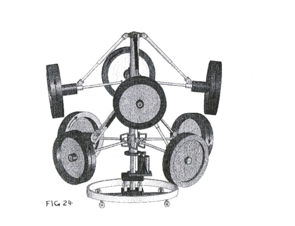 Figure-24, US Patent 7,900,874 is configured differently. Gravity is not required; horizontal forcing torques produce vertical precession and motion. VMT-IPDs need to be tested in the Space Station where gravitational forces are cancelled out, thus presenting a unique need for testing space related propulsion devices. VMT-IPDs are designed for orbital movement, station-keeping, deorbiting spent satellites, and attitude control of any space vehicle or probe without the need for propellant or control jets. Power can be solar cell, RTG, or nuclear. Eliminating jets and on-board propellant reduces launch weight and cost significantly. With thousands of satellites and space missions, designing, testing, and manufacturing of these devices will create new industries and jobs helping the economy and allowing United States to remain a leader in the space arena.