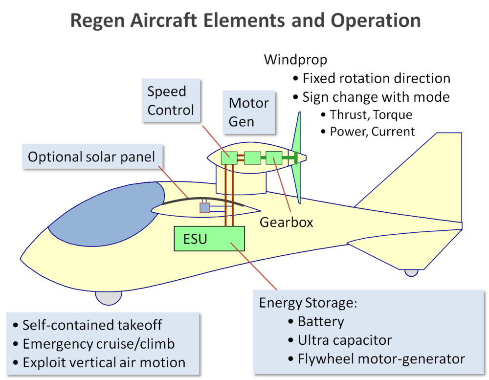 Adding the "regeneration" feature to an electric aircraft significantly extends the flight time, distance, and safety. The dual-role "windprop" provides power for self-contained takeoff, cruise, and climb, and as an airborne wind turbine, restores battery energy when the aircraft encounters updrafts and in final descent. In principle, a "smart autonomous" regen could remain aloft indefinitely at high altitudes. This and related presentations are found at www.HowFliesTheAlbatross.com