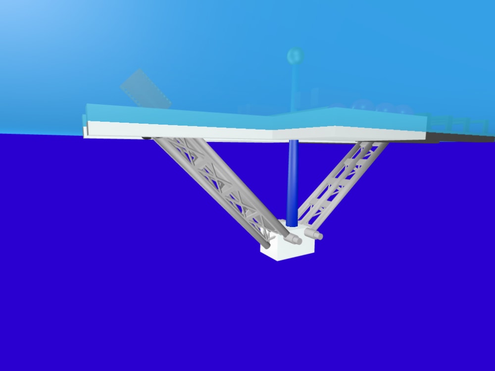 Consisting of a gigantic floating catamaran supporting a 50 foot diameter cast concrete electrical mortar, the giant platform is nearly a mile long and 600 feet wide. Cast into the mortar tube are electromagnetic coils that propel huge 50 foot by 200 foot long "bullets" to a muzzle velocity of 9,000 meters per second. This giant rail gun mortar (5,000 feet long) will be built with bouyancy chambers to allow the tube to be flooded selectively and provide elevation control. The entire raft can be rotated to launch in any direction. A roller trunion allows the mortar tube to move freely.