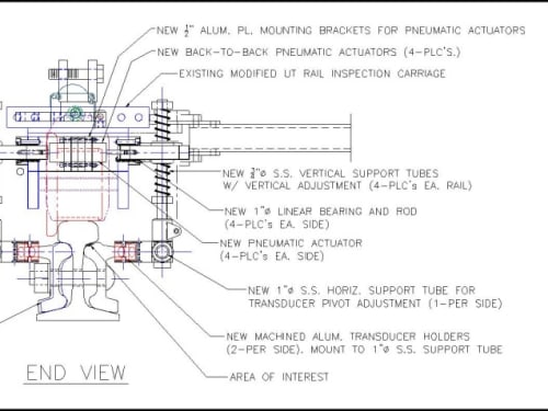 A contact-type ultrasonic inspection system, mounted on a carriage that is pulled behind any hi-railer vehicle on a railroad track.