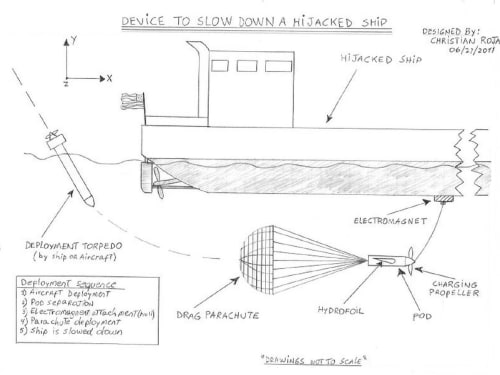 This system will help in slowing down a hijacked marine vessel escaping from authorities. The simple theory behind this invention is based on using the dynamic principle of “Impulse and Momentum.”