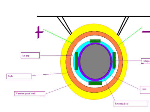 Please forgive my poor quality graphics. My idea was to develop a DC generator that would use the torque from a vehicles drive axle; or drive-shaft to provide additional power. The body of the vehicle provides the anchoring points for the outer housing of the Remora which contains the circuitry for creating the DC current.
