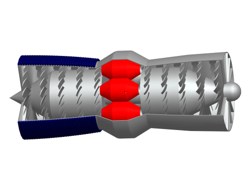 The design is basic; a central vertical shaft is a helical coil whose proportions, materials and torsion are scaled to the load of the task.