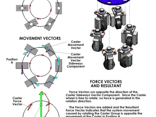Call it the Swirl Drive. The purpose of the idea is to improve on the Mecanum-type drive system by increasing traction and stability (and utilizing more off-the-shelf components), while retaining its simplicity, maneuverability and control system.