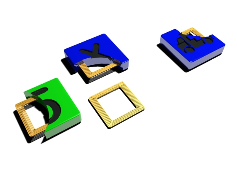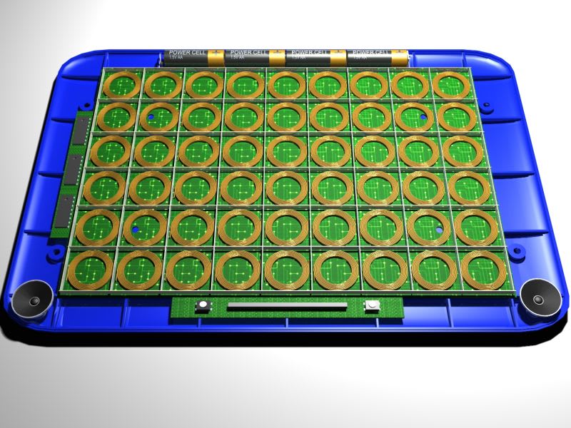 On the main PCB of the ABC board there is an array of coils, each of these coils has exactly the same value as each other coil on the board. When each coil is energised it will give of a magnetic field which will react to any other coil placed on top of it. The resulting magnetic interference can be calculated, and when the result of that calculation matches what is stored in memory it will either say the letter or icon on its own, or spell it as part of a word. Any spaces left inbetween words or icons would naturally be considered a pause. When the talk button is pressed the coils on the main board will energise one at a time so as not to cause interference to the other coils.