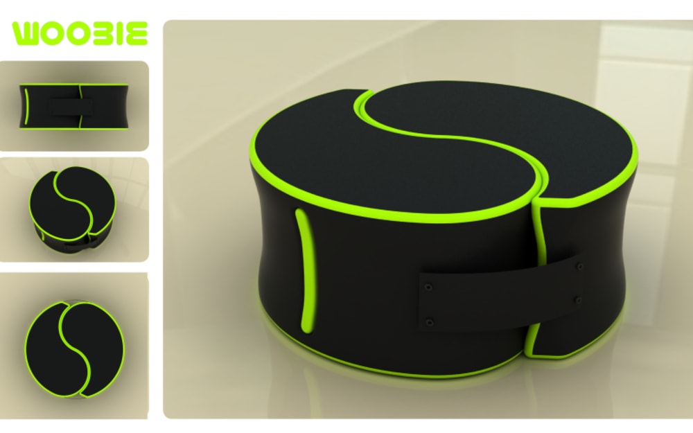 Woobie is a smart combination of a seat, rocking-chair and a table. Wobbie is made of two parts, resembling the shape of a jing and a jang.
