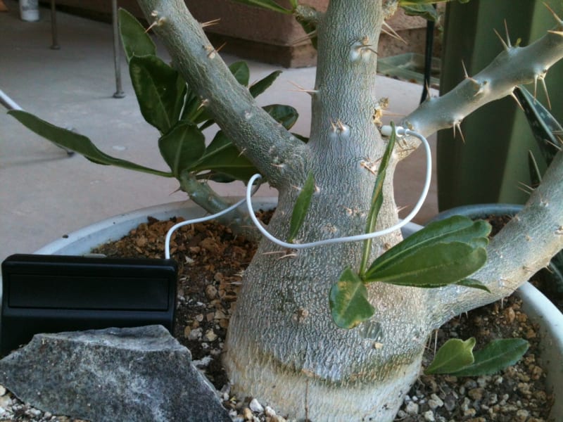 In this project we will use acoustic sensors and advanced data processing techniques to explore the way Saguaros move and circulate their water. These techniques have been used to monitor tiny capillary constrictions inside woody trees during drought conditions, but have not been applied to cacti or a wide variety of plants. The internal acoustic emissions will be transformed into audible emissions. A variety of stressors and activities will be applied to the subject cactus to try to induce changes in the acoustic emissions. These stressors include dryness, cold, heat, UV intensity, over-watering, physical contact, exposure to noise and music, etc. By understanding these sounds we intend to develop a relationship between stress and plant sounds.