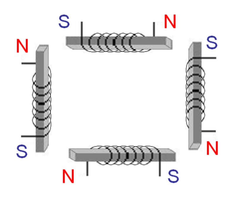 The internal structure of the emitter is made up of four sellenoid magnets which are connected by their inverse poles and form a rectangular geometry. Electromagnets are the devices which we may control the magnetic characteristic by changing the level of the electric current. The rectangular geometry of the electromagnets create almost a cicular magnetic force. By changing the current, the radius of the circular motion can be controlled. So the emitter provides an outwards spiral moment.