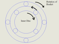 Let us assume that the rocket rotates in the clockwise direction, as shown in the figures.